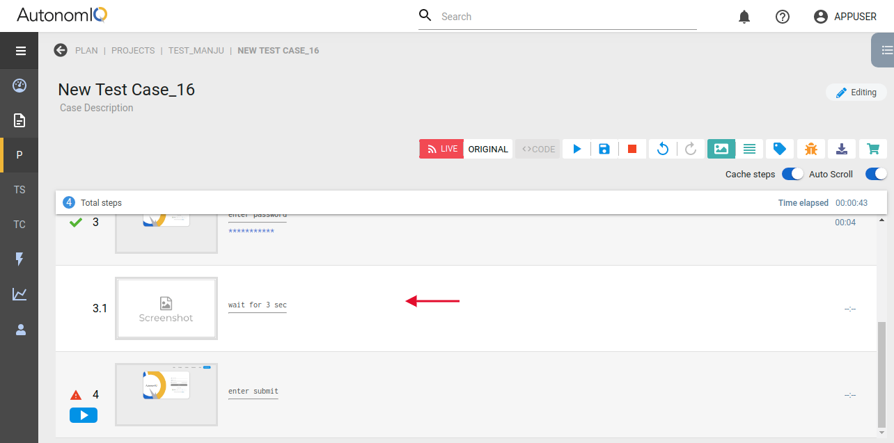 eg: at step 3.1 now click on smart retry icon. the step start generating from 3.1