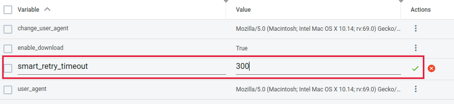 We can specify a value in seconds, here 300 secs will make smart retry button visible for 5 min so user get enough time to debug the error thrown step