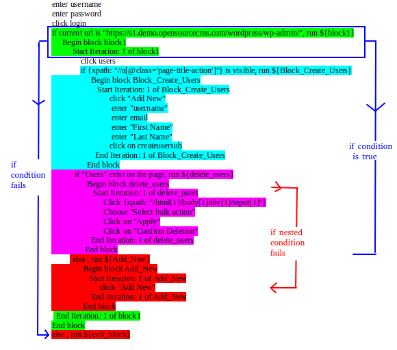 ex. For instruction if “login” is on the page, enter username if login is not there , we won't discover enterable username at all. And system will simply just move to next instruction