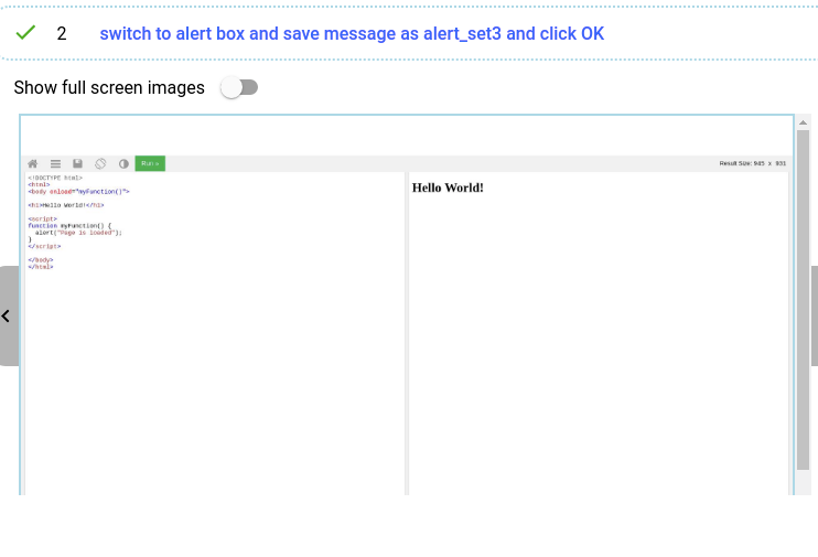 By default, AutonomIQ will check if a browser alert is present on the screen before interacting with any element on the screen. If an unhandled alert is present (alerts can be handled by – switch to alert and click on OK/Cancel), it’ll purposely fail the test step with an error message stating that the alert is unhandled. If the user doesn’t want for the test step to fail, they can use the ignoreAlert option as shown below