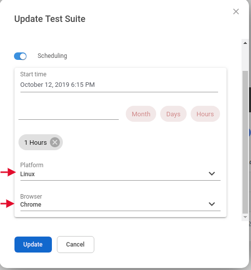 While scheduling a suite user have option to select platform and browser details so that the scheduled suite will execute in the respective platform, browser.