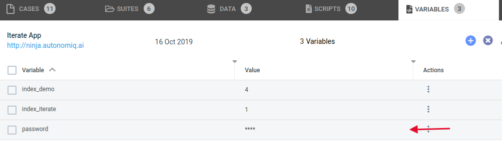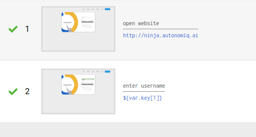 If the application under test has progress bars/spinners as a part of the UI design, AutonomIQ provides the capability for users to specify the spinner information as a variable as shown below under “variables” tab. Once this information is provided, AutonomIQ will dynamically wait until the progress bar/spinner disappears before proceeding with the next step.